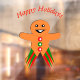 Este impresionante revestimiento de la ventana en forma presenta un lindo personalizado de un colorido hombre de jengibre. tiene botones rojos y verdes, una gran sonrisa en su cara y borlos rojos y verdes alrededor de sus piernas listos para un fiesta Navidad. Hay un texto personalizado para que puedas incluir un mensaje de bienvenida.