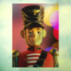 Navidades soldado de juguete figurina SlipperyJoe orgullo gay regalos LGBTQIA coloridas luces de bokeh fondo vibrante chaqueta roja uniforme de oro botones de hombro peatones caricatura rostro artístico gorra negro oro emblema rosa púrpura amarillo ambiente festivo
