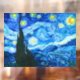 Ventana con pintura al óleo de Vincent van Gogh La noche estrellada (1889). Inspirado por su estancia en un asilo, el arte representa un pueblo bajo un cielo nocturno de estrellas y luna azul y amarilla. Un gran regalo para los aficionados al post-impresionismo y al arte holandés.