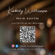Elegante y chic rótulo adhesivo de ventana personalizado para su negocio que presenta su nombre en una elegante tipografía blanca y el tipo de negocio debajo en una tipografía blanca moderna y simple. Ingrese la dirección URL de su sitio web para crear un código QR para que los clientes y clientes lo escaneen y obtengan una lista de sus productos, servicios, horarios, etc. Agregue sus identificadores de usuario de instagram y facebook para que los clientes lo sigan en las redes sociales.