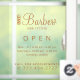 Elegante moderno barbero peluquero barbería nombre hombres salón horario de apertura señalización ventana adhesivo con tipografía negrita dorada y cobriza con tijeras y poste. ++++++++++++ Adecuado para barbería, salón de hombres, peluquero profesional. +++++++++++++++++++++ Fácil de personalizar con el nombre de su salón o estilista, llamar para citas número de teléfono, y su texto.