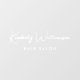 Vinilo personalizado elegante y chic para la ventana de su negocio con un ambiente minimalista que presenta el nombre de su empresa o marca en una elegante escritura blanca con texto adicional debajo si se desea en tipografía blanca moderna y simple.
