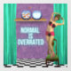 Funky y divertida función de la limpieza de ventanas "Normal está sobrevalorado" en neón con mujer vintage en traje de baño lindo de pie en la silla...¡no olvidemos que el pez dorado salta de la multitud a su propio tazón!
