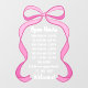Haga saber a sus clientes o clientes sus horas de apertura con este lindo decal de ventana de horas de apertura con las horas de su pequeño negocio enmarcadas por una simple ilustración de un lazo rosa con cintas largas y rizadas. Personalice la vineta de ventana de horas de apertura con su número de teléfono y termine con "¡Bienvenido!" en un guión lindo. La vineta perfecta para la ventana de horas de apertura para boutiques lindas, salones de belleza, peluquerías, peluquerías de mascotas y más.