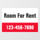 Este letrero es de color rojo brillante, negro y blanco. Puede editar el texto para satisfacer sus necesidades. Puede agregar su mensaje personalizado (mostrado: Habitación en alquiler) y número de teléfono. La parte superior es blanca con texto negro. La parte inferior es de color rojo brillante con texto blanco para su número de teléfono o texto personalizado. Todo el texto se puede editar o eliminar.