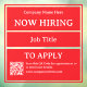 Código QR Ahora contratando vacante de negocio de tienda. Solo para superficie de vidrio. Corrija el tamaño y complete todos los detalles antes de finalizar.