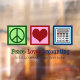 Vinilo de ventana de oficina de contable lindo con nombre de negocio o empresa personalizado. Esta decoración de pared de contable presenta un signo de paz, corazón y una calculadora. Regalo de Contabilidad Paz Amor para un CPA.