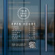 Present your business hours clearly and professionally with this modern Open Hours clear window cling. Designed with a clean layout, your logo and QR code, and easy-to-read white lettering, this sign allows customers to instantly see when you’re open. Ideal for retail stores, salons, cafés, restaurants, studios, clinics, and service-based businesses. With one quick scan, customers can visit your website for updates, services, menus, appointments, or additional business information. Easy to apply and remove, this professional window decal is perfect for glass doors and windows. It reduces confusion about hours, improves the customer experience, and creates a polished, trustworthy first impression before customers walk inside. Upgrade your storefront with a simple, stylish window sign that keeps customers informed and connected.