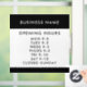 Customize this modern black and white script window cling sign for the perfect sign. Add your business name and business opening hours. All the modern minimalistic typography is editable. The clean clear lines create a stylish professional look. This black and white window cling sign is simple and versatile.