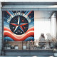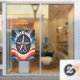 4 de julio Orgulloso de ser estadounidense Día de la Independencia adhesivo para ventana con colores patrióticos rojo, blanco y azul. Estos adhesivos para ventana transforman tu vidrio en hermosos acentos decorativos únicos. Úsalo para promociones o decoraciones de pequeñas empresas, nunca pasan de moda. Puedes usar opciones opacas o transparentes proporcionadas por Zazzle. El texto circular se puede personalizar.