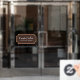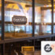 Un marco decorativo muestra su nombre o el nombre de su negocio en estilo de caligrafía en este adhesivo de ventana personalizado. Ideal para boutiques, panaderías, tiendas minoristas, tiendas emergentes y más. Arte y diseño © 1201AM Design Studio