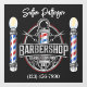 Mi abuelo, Daddy Ray, era barbero. Hombre de piernas largas (¿cómo no las heredé?), alto, postura erguida, cabello negro y bigote... Caminaba hasta su tienda todos los días luciendo como un millón de dólares en su traje de tres piezas (y reloj de bolsillo). Cuando falleció, mi abuela vendió la tienda a un tipo que nunca terminó de pagar, y si pudiera encontrar ese hermoso mueble de madera con espejos y casilleros, las sillas, la barra, ¡iría por todo! Cuando visitábamos, mi hermana y yo corríamos a la tienda, y Daddy Ray nos daba diez centavos para ir a Rose's (tienda de cinco y diez centavos). ¡Le dije mi edad allí, no lo hice! Esto está en el mismo tema que una tarjeta de presentación muy popular que quizás quieras revisar en Colecciones de Tarjetas de Presentación 1, 2, etc.... y mis colecciones para Manicura y Barbería.... Pegatinas y adhesivos para ventanas.... Decoración para Negocios. Cambia el texto al tuyo. Reduce o amplía el texto. Publicaré más en este tema con frecuencia. Muchas gracias por estar aquí conmigo. Te lo agradezco, espero verte a menudo, y pregunto si no llegaste a mí a través de mis redes sociales que borres las cookies y visites Zazzle escribiendo