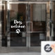 Letrero de bienvenida para perros para tu tienda o pequeño negocio. Una colección de adhesivos y calcomanías modernas y prácticas para tu oficina o negocio.