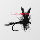 Silueta negra de una mosca seca de pesca con mosca a personalizar con su propio saludo, nombre, mensaje, etc