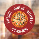 La ventana temática del restaurante Round Pizza cling decal, le permite personalizar en línea con la imagen de un pastel de pizza y las palabras Dine In, Takeout, Delivery y un número de teléfono. Promueva su pizzería en un símbolo de despensa económico diseñado profesionalmente para las ventanas de su tienda o puerta delantera.