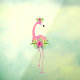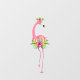 Un hermoso ilustracion acuático de un único flamenco rosado de pie mirando a tu lado. Tiene flores de selva tropical en la cabeza y lleva una falda hecha de flores de hibisco y hojas tropicales. Son ideales para la ducha de bebés; Celebraciones de fiestas de cumpleaños temáticas hawaianas y decoración de guardería.