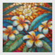 Plumeria tropical sobre arte de vidrio naranja Staines