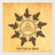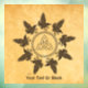 Nueve cuernos animados (Corvus corax) rodean un anillo norso/celta. En el centro aparece un triquetra, una figura triangular de tres arcos entrelazados. Todo está superpuesto a una imagen de fondo de papel antigua, lo que le da un toque medieval. Personalizar agregando su propio texto. En la mitología nórdica el número nueve se asocia con Odin y sus valquías, conectándola con la naturaleza cíclica de la vida, la muerte y el renacimiento. Las avenidas eran símbolos multifacéticos, incluida la conexión entre los mundos de los vivos y los muertos. En efecto, esta imagen se puede pensar en un ouroboros aviares.