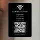 Una simple plantilla de señal de calcomanía de ventana de vinilo negro personalizada para conectar a WiFi de negocios en un estilo minimalista moderno que se puede actualizar fácilmente con su código QR, detalles de la red o texto personalizado.