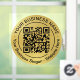 Moderno y elegante código QR negro redondo y texto circular con marco en una tarjeta de ventana de fondo de Relieve metalizado dorado. Inserte su código QR con un fondo transparente como un archivo ~.svg, ~.ai o ~.png. Puede sustituir el fondo del Relieve metalizado dorado por una imagen de su elección. ¡Transformar tu tienda o ventanas de coches en poderosas herramientas de marketing!