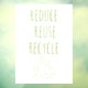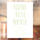 Promocione la conciencia ambiental con esta calcomanía de ventana impactante de Reducir Reutilizar Reciclar con un icono verde de la Tierra. Diseñada para negocios eco-conscientes, tiendas de cero residuos, cafés y centros de reciclaje, esta calcomanía envía un mensaje claro a los clientes y transeúntes. Impresa con materiales duraderos y fácil de aplicar, se adhiere a las ventanas sin dejar residuos. Una adición elegante y significativa a su escaparate sostenible o iniciativa verde.