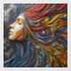 Un retrato abstracto que capta la visión lateral de una mujer. Su rostro se levanta ligeramente y su cabello largo y denso se representa en una danza fascinante de volar, tejer y curar en un estilo abstracto, sobre un granito gris oscuro. Colores vibrantes y líneas abstractas se unen en una sinfonía artística, creando una obra de arte verdaderamente magnífica.