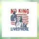 mensaje a favor de la democracia, declaración contra trump, sin diseño de reyes, protesta patriótica 2025, lema de libertad estadounidense, resistencia política EEUU, cuarta protesta de julio, cita de igualdad democracia, resistencia al autoritarismo, activista merch EEUU