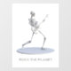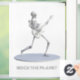 El texto Rock The Planet puede ser personalizado por usted. Esqueleto con guitarra eléctrica en una pose de rock clásica.