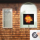 Rosa en llamas del fuego y la llama sobre fondo negro.
