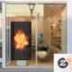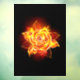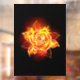 Rosa en llamas del fuego y la llama sobre fondo negro.