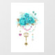 Llave de oro antiguo con rosas turquesa de moda decorados con hojas de oro blanco y cuentas rosas y azules. Color de moda. Rosas turquesas. Oro blanco. Tifanía azul.