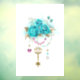 Llave de oro antiguo con rosas turquesa de moda decorados con hojas de oro blanco y cuentas rosas y azules. Color de moda. Rosas turquesas. Oro blanco. Tifanía azul.