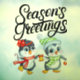 Una ventana corta que llama a la decoración para oficina o hogar un saludo de temporada de escritura de tipografía con dos pequeños pingüinos