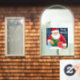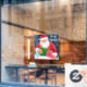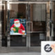 Transforme su tienda o casa con esta encantadora vidriera que presenta un adorable Santa en una escena de Navidades nevados, llevando regalos para todos. "Feliz Navidad" se muestra alegremente, agregando alegría festiva. Perfecto para crear un ambiente cálido y acogedor, este edificio es ideal para las exhibiciones de tiendas o la decoración de casa.