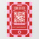 Trendy retro QR Code window cling with girly pink & red checkered background and modern fonts. This groovy shop window decal include a trendy phone design with space for your name or logo, scannable QR code and contact details. You can use this window vinyl poster to promote your website, connect with customers or make it easy for customer to see your menu or price list, simply add your custom URL and make your scannable window cling.