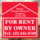 SE ALQUILA POR PROPIETARIO Pegatina de ventana de Inmobiliaria Personalizada. Personalice su sitio web y su número de teléfono. Haga clic en personalizar esta plantilla para personalizarla rápida y fácilmente. Se envía a todo el mundo rápidamente.