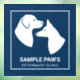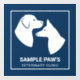 Diseño elegante para clínicas veterinarias, hospitales de animales y otros negocios mascotas en colores azul oscuro y blanco. El diseño presenta las dos siluetas de perro blancas de Destei, unas frente a otras. Uno de los perfiles de perro se parece a un perro de la raza Labrador Retriever, mientras que el otro se parece a un Kelpie australiano o a un perro similar con orejas perdidas. Personalice las áreas de plantilla de texto de ejemplo con los detalles de su negocio.