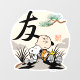 Echa un vistazo a esta adorable gráfica de temática japonesa de Snoopy, Charlie Brown y Woodstock relajándose juntos por la noche. Con el símbolo de "Amigo" y un sello rojo que dice "Snoopy".