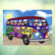 Hippie sock monkeys riding in their joy-peace-love van
