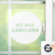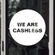 Señal de ventana blanca redonda para negocios sin efectivo con texto "no aceptamos efectivo". Ideal para tiendas y restaurantes que solo aceptan tarjeta de débito / crédito.