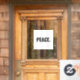 Texto blanco y negro de paz minimalista contra la guerra Ventana Llamado / signo. Texto negro personalizado sobre fondo blanco.