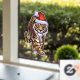 Vinilos Para Cristales Tigre festivo en una ventana de Santa Hat