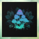 Taburetes misteriosos, bioluminiscentes, alucinógenos, brillantes con arbustos de plantas pantanosas en la noche, oscuro, brillante fondo. Hongos brillantes. Goblincore, hongos,