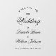 Una simple señal de bienvenida de boda alfabética transparente. Es un adhesivo para ventana, para ser colocado en una ventana u otra superficie de vidrio o acrílico transparente.