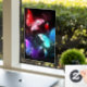 Vinilos Para Cristales Tres mariposas brillantes en el fondo nocturno