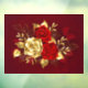 La composición de dos rosas rojas pintadas artistalmente y un rosa dorado, decorado con oro, hojas de joyas sobre fondo texturado.