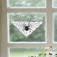 Este revestimiento de ventana tiene una tela de araña triangular negra sobre blanco con una araña de viudez negra venenosa con un marcado rojo de vidrio.