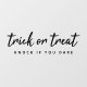 Sencillo y elegante "truco o trato - llamen si se atreven" halloween transparente plastro de vidrio de ventana de vinilo en un moderno estilo de diseño minimalista con una tipografía de escritura a mano en negro clásico escrito en un estilo informal informal. El texto puede ser fácilmente personalizado para un diseño único y de tipo para la temporada de halloween. ¡El diseño de halloween perfecto para el truco o el tratamiento! #trickortratar #halloween