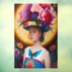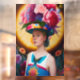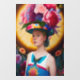 Una imagen de una dama con un gorra floral. Esta es una imagen creada por IA con diseño de temática floral.