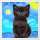Ventana con un gato negro en la pintura Starry Night de Van Gogh! Este gatito de ojos azules mira adorablemente desde un fondo de remolinos azules y una brillante luna amarilla. ¡Un regalo fantástico para los amantes del gato y para los coleccionistas holandeses de arte!